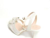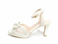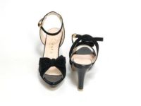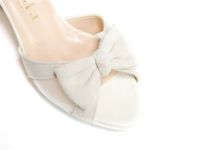 チュールと革のコンビが可愛らしいリボンサンダル足を美しく見せてくれる高さの約7cmのヒールも前ストームで傾斜が抑えられて、履き心地も◎細めの足首ストラップで華奢見え効果も! #サンダル #ミドルヒール #ワイズE