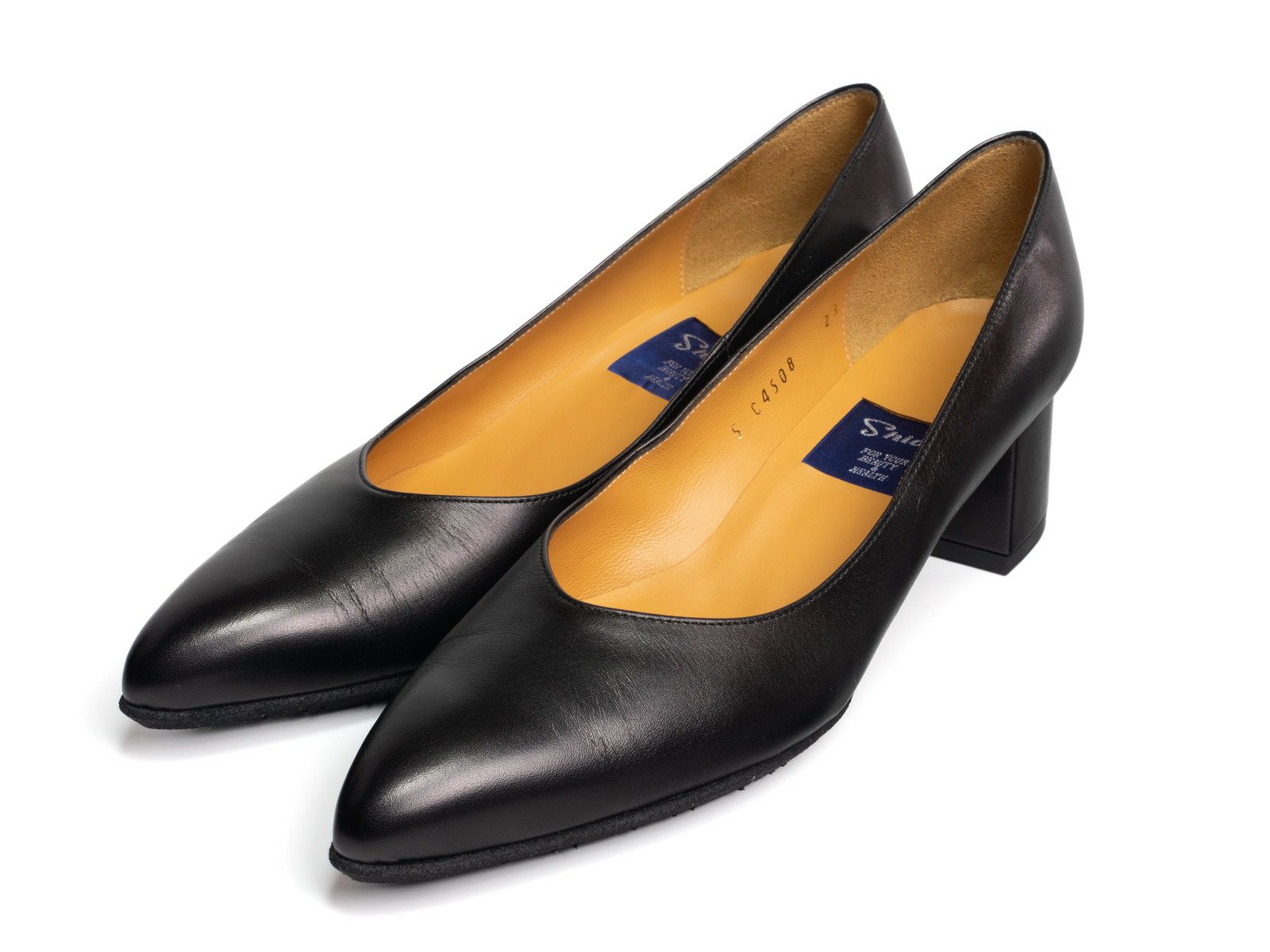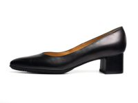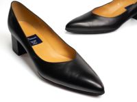 スタイリッシュさが魅力のポインテッドトゥパンプス。 細足さん必見のCワイズ設計! オーダーパンプスi/288と同様の、認証木型やパーツを使用した機能性のあるこだわりの一足。 長めのアウトソール採用で、衝撃を和らげ滑りにくさを実現しています。 使用している本革には、一部加工が施されており履きあたりが良いのもポイントです。 安定感のある太ヒールでありながら、Vカットデザインが甲をきれいに見せてくれるスタイリッシュな仕上がりとなっています。 プレーンなブラックカラーは、通勤や通学にもお履きいただけます。 #細足