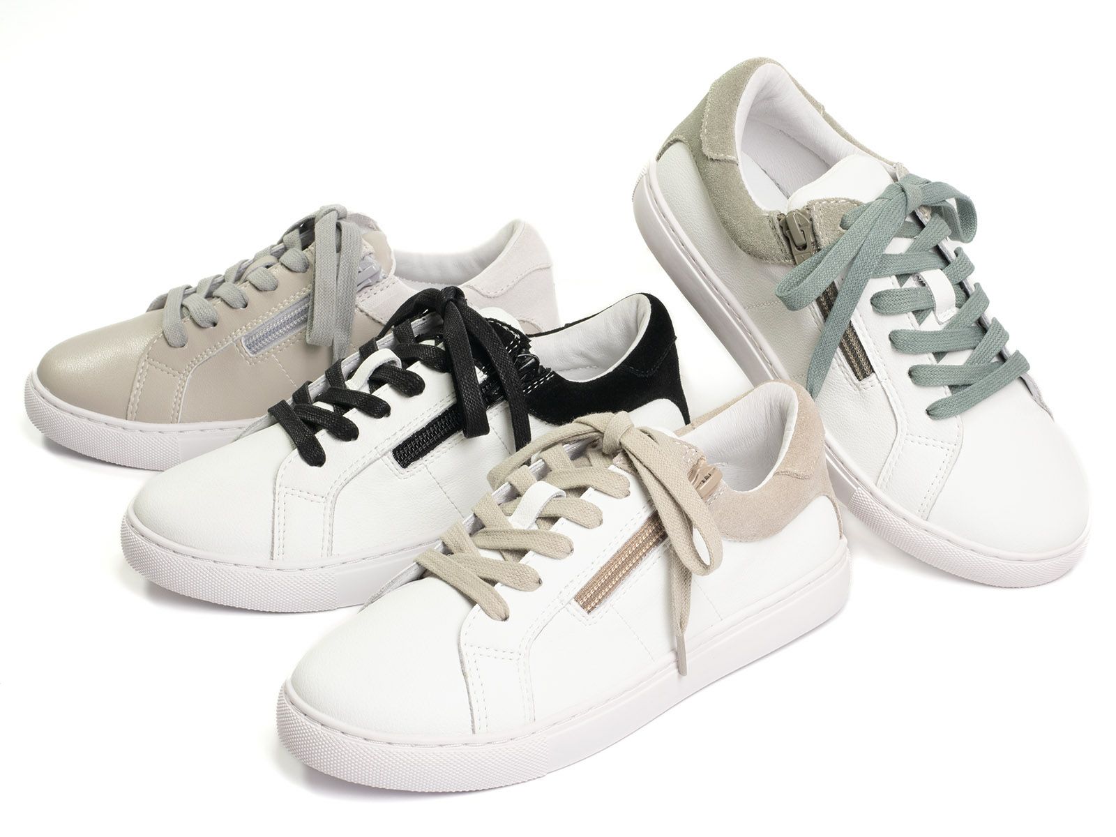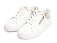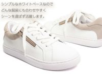 ホワイトベースのデザインがどんなスタイルにもマッチし、替えの靴紐付で自由なアレンジを楽しめます。