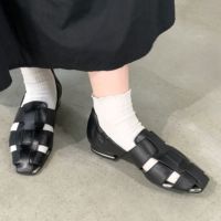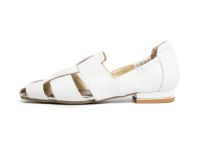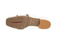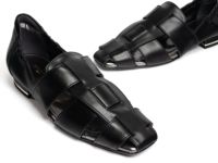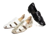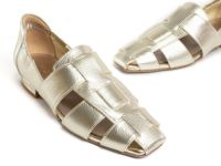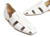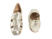 つま先はカバーしているが、抜け感のある、グルカサンダルのようなローヒールパンプス。