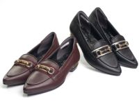 ビット付きラウンドローファー。 チェーンとリボン帯が華やかでマニッシュなローファーのポイントに。 履き込みの深いカジュアルローファーに比べ甲が浅いので女性らしくエレガントな仕上がり◎。 スタイリッシュなコーディネートやフェミニンな装いができる万能アイテムです。 【POINT】 ・小音リフト ヒールのカツカツ音を消してくれるリフト。静かな歩行で不快感を与えない。 #パンプス #本革 #ローヒール #ポインテッド