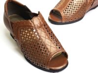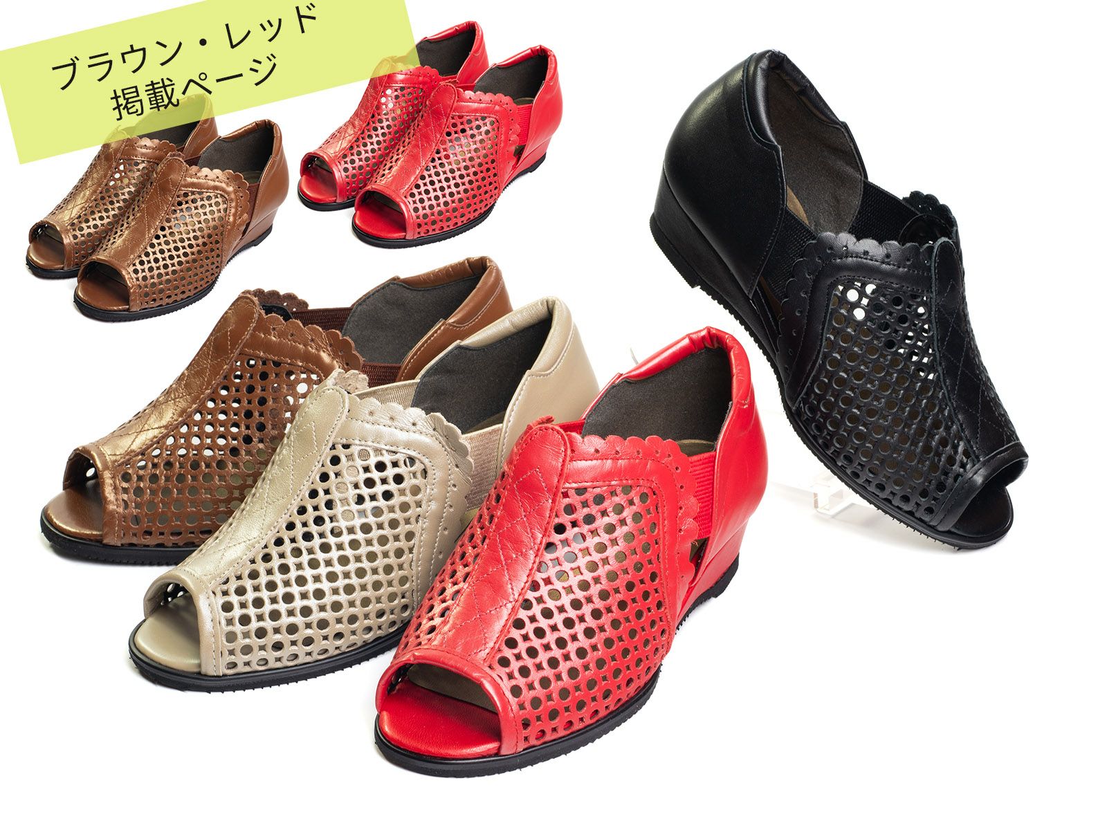 パンチングデザインが夏らしいウェッジソールサンダル。