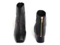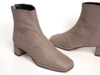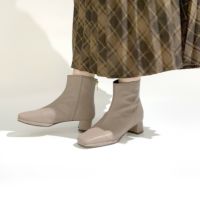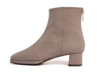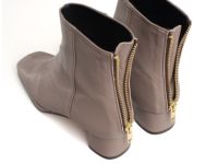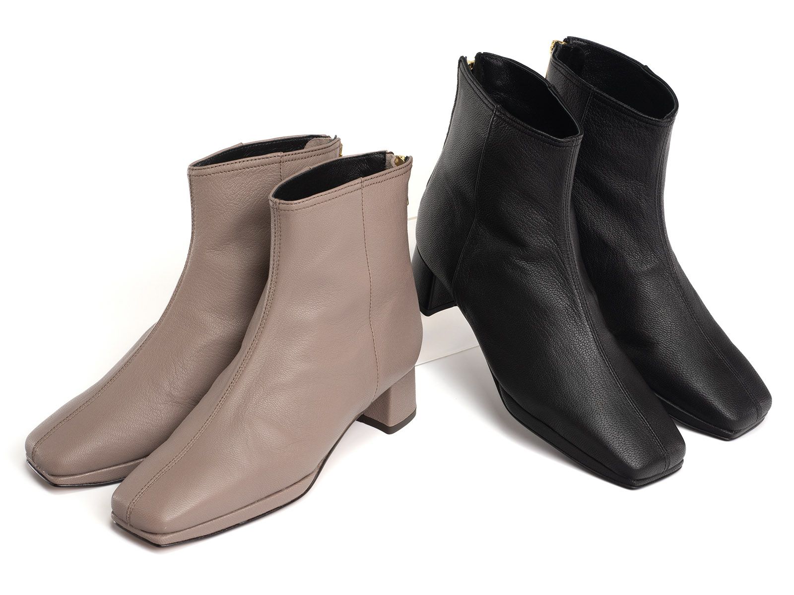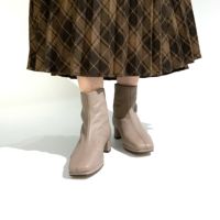 バックファスナーで簡単に脱ぎ履きができるブーツ。くすみ系カラーで季節感を演出。