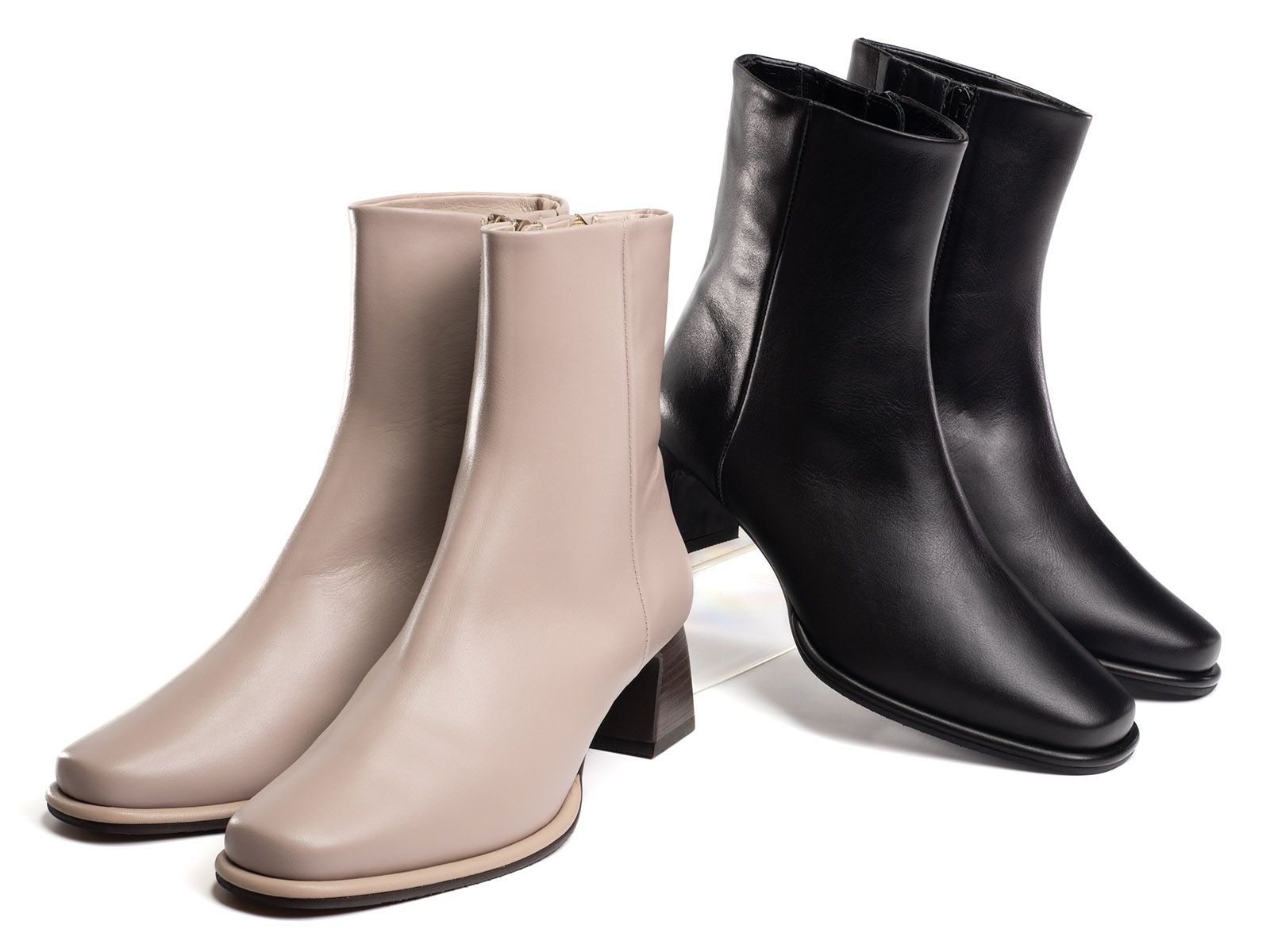 すっきりしたシルエットで女性らしさを引き立てるショートブーツ。