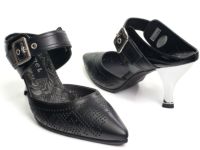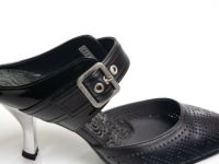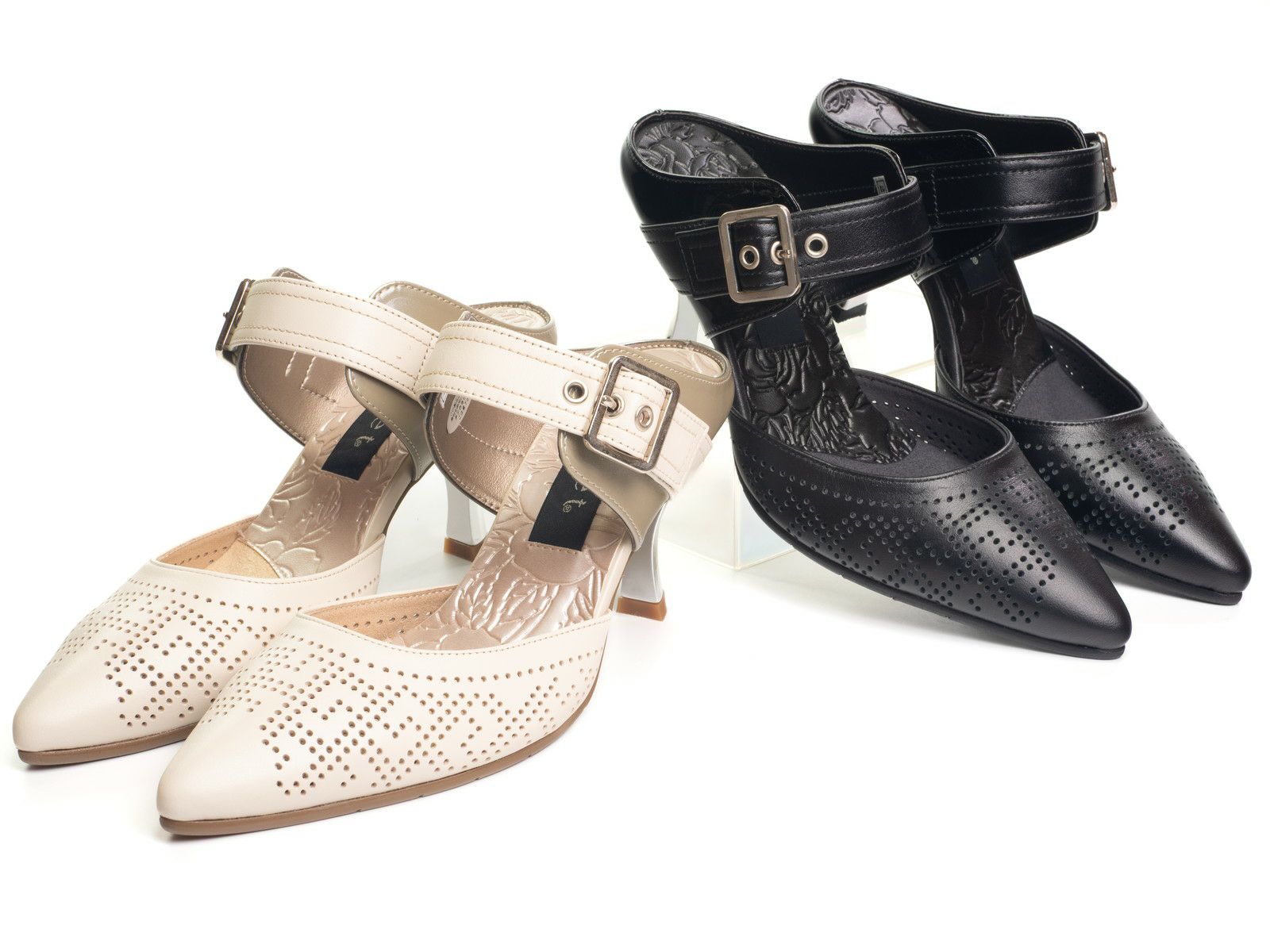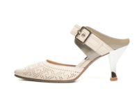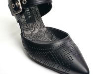 小さめなレザーカットデザインをアッパーに施したミュールパンプス。 甲のベルトは調節可能にしておりホールド感もあり、着脱も楽にできるのが嬉しいポイント。 シャープなポインテッドトゥのシルエットとさりげないレザーカットがアクセントになり、大人カジュアルモードなコーディネートにおすすめです。 #パンプス #ミュール #本革 #ハイヒール #ポインテッドトゥ