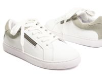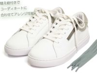 ホワイトベースのデザインがどんなスタイルにもマッチし、替えの靴紐付で自由なアレンジを楽しめます。