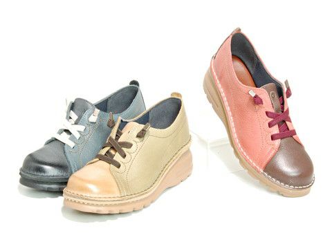 カジュアルシーンにぴったりのレースアップシューズ。紐がゴムになっているので、脱ぎ履きが楽々。幅広の方も安心の4E、ウェッジソールで安定感もあり、歩きやすくておすすめの1足です。