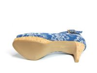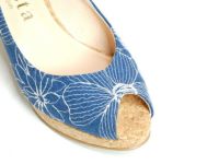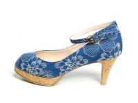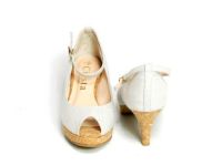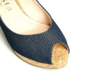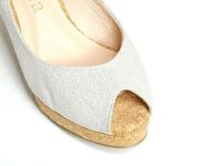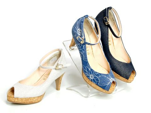 爽やかな季節を感じるコルクソールにキャンバス地のストラップパンプス。