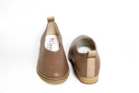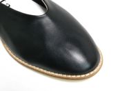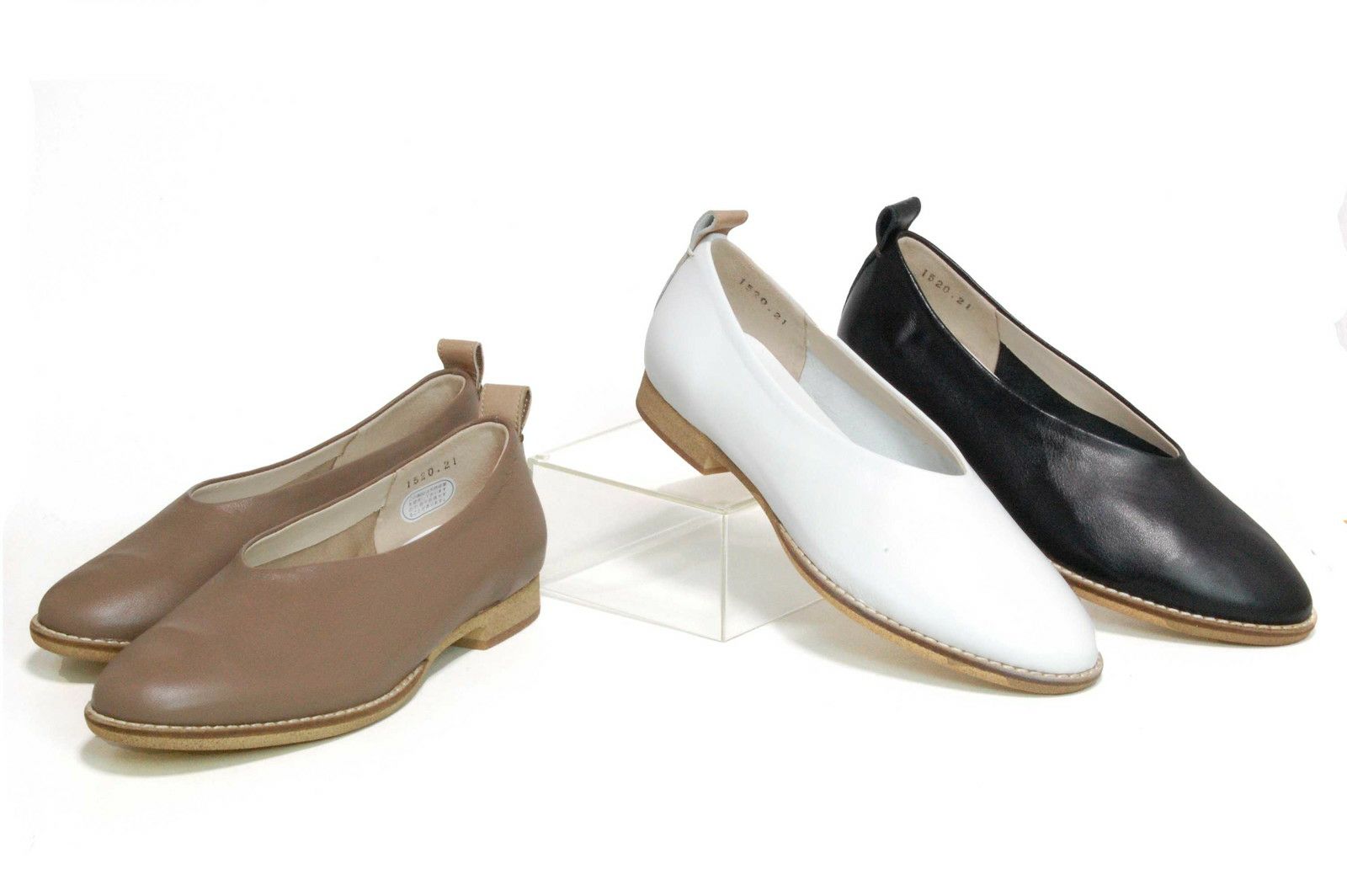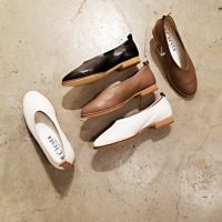 ローヒールのやわらかな革で、楽に履けるカッターパンプス。流行のリラックススタイルにもよく合い、冬は靴下を、夏は素足で履いて季節を問わず活躍してくれます◎