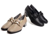 オリジナルのスクエアパーツをあしらったチェーンビットローファー。 メタリックカラーのキルト柄ヒールが足元を華やかに演出してくれます。 シンプルなデザインでパンツはもちろんスカートにも好相性! #パンプス #本革 #ローヒール #スクエア #ワイズ3E