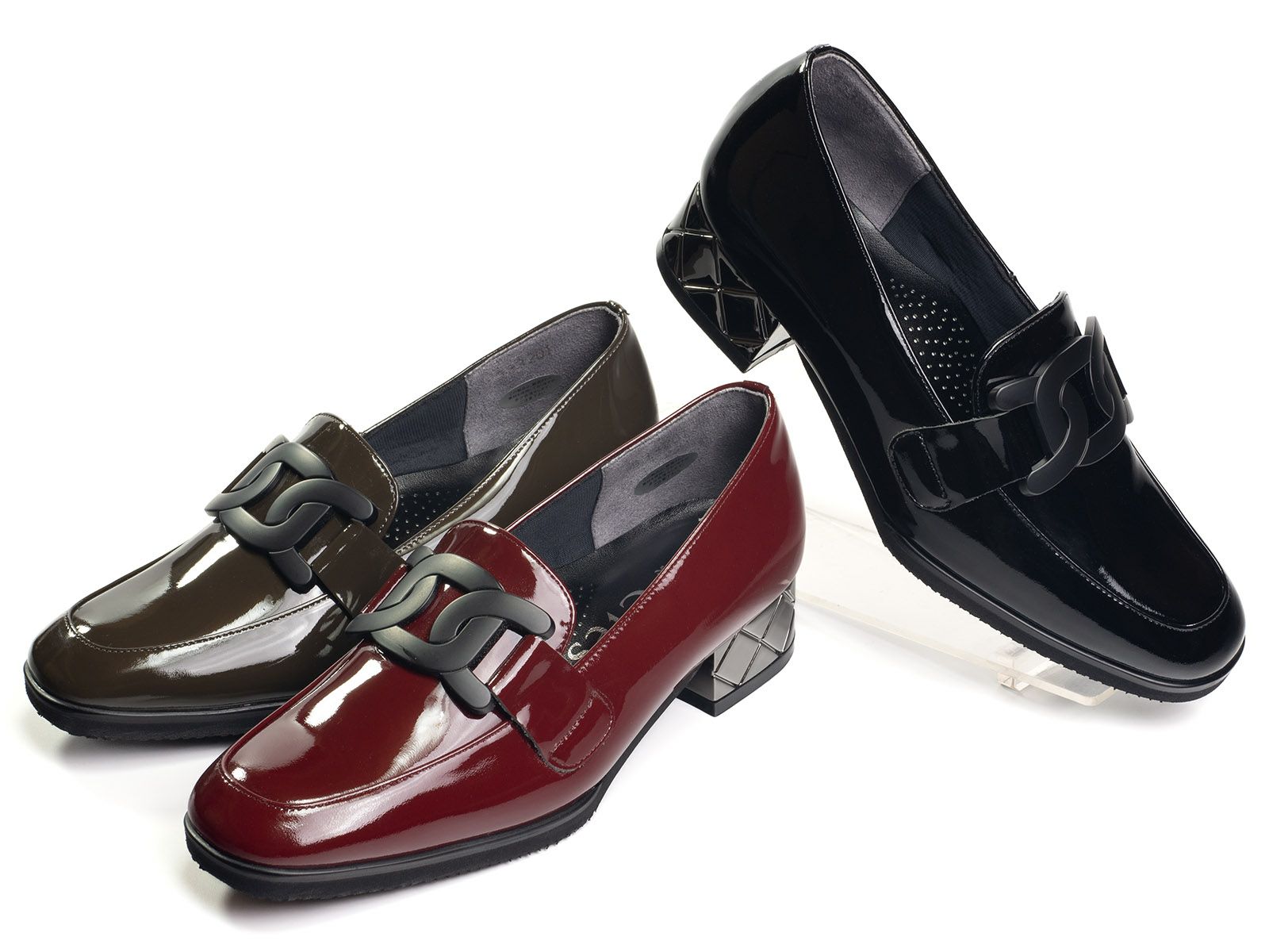 細身なトゥラインにメタリックカラーのキルト柄ヒールでどこから見ても素敵なデザイン。