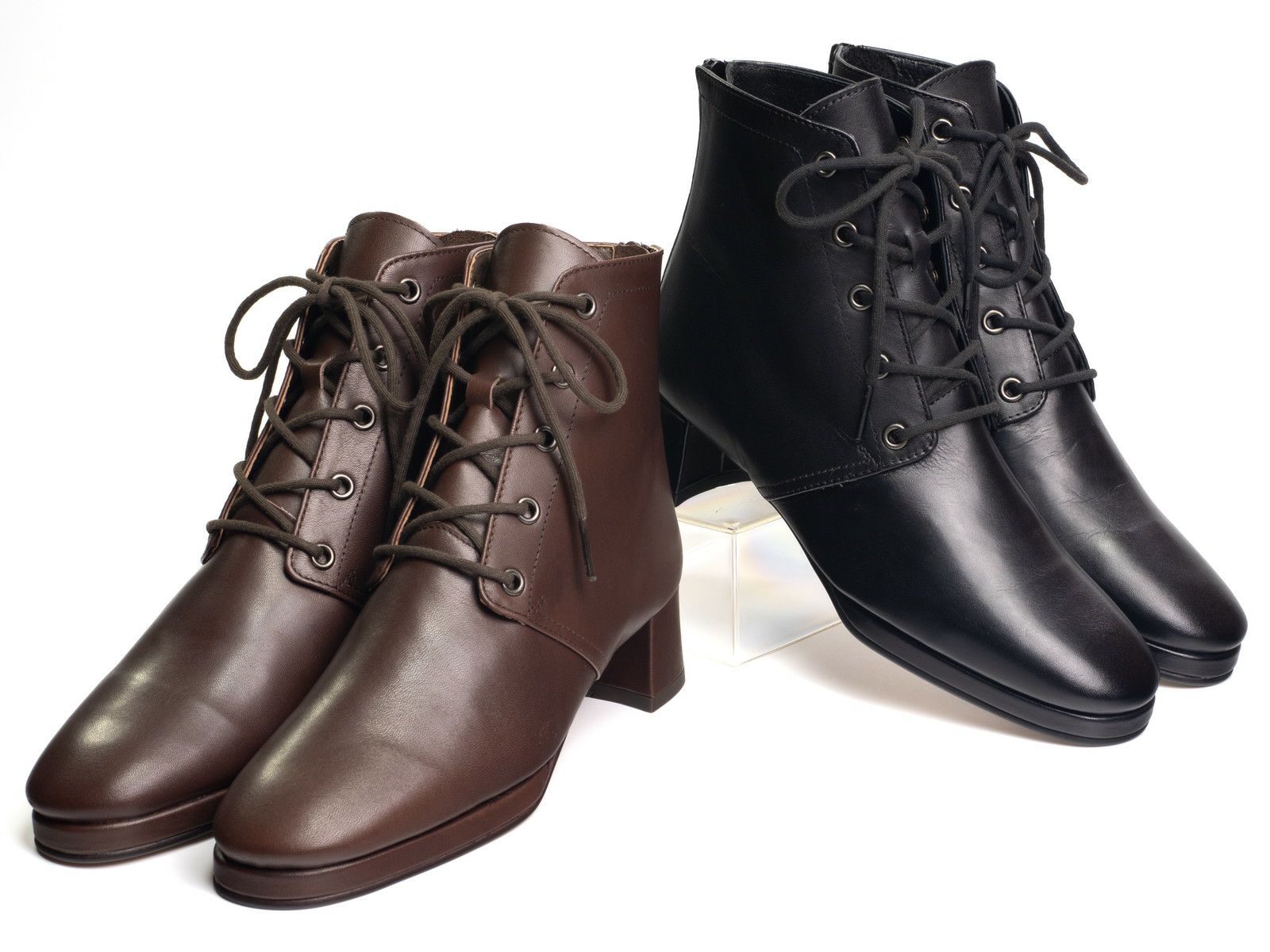 #ブーツ #レースアップ #本革 #ミドルヒール #ラウンドトゥ #背が高く見える