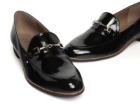 上品なエナメルと、つま先部分のメッシュ裏張りが足当たりを柔らかくします。