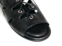 素足が見えるレースアップとオープントゥで涼し気な雰囲気