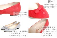 大人の女性にも違和感なくお履きいただけるシンプルなリボンパンプス。晴れの日にはもちろん、突然の雨にも安心な、嬉しいレイン対応◎ ソフトでしなやかな手触りのマイクロファイバーを使用し、汚れがつきにくく、ブラシなどで簡単にお手入れできる防汚加工を施しております。また、耐久性があり長持ちで色が落ちにくく、長くお使いいただけます。