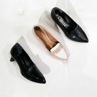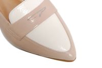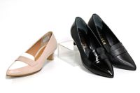 スムース、エナメル、エナメルコンビと3種類のエレガントなローファーパンプス。 品のある雰囲気でオフィスカジュアルやデイリー使いにも◎ マニッシュになりがちなローファーも、緩やかなカーブのソフトポインテッドトゥで女性らしい印象に。 甲が深めで脱げにくく、ヒールの接地面が大きいスクエアヒール形状で歩きやすい。