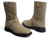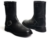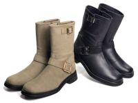 モダンなスクエアトゥデザインのエンジニアブーツ。 土踏まず部分の安定性と履き口の柔らかさが長時間の使用でも快適な足当たりを提供します。 シンプルながらも洗練された外観でどんな服装にも簡単に合わせることができます。 #ブーツ #本革 #ローヒール #スクエアトゥ