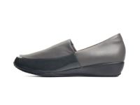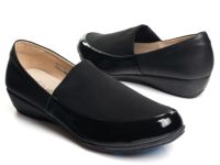 やわらかなストレッチ素材を使用したストレッチパンプス。 甲部の柔軟なストレッチ素材が足を優しく包み込み、脱ぎ履きしやすくずれにくいフィット感を実現。 エナメルのアクセントが洗練された印象を与えます。アーチサポートと二層構造の中敷で足裏をしっかりサポート。 カジュアルながらエレガントなシルエットのウェッジソールで一日中快適に過ごせます。 #パンプス #人工皮革+ストレッチ素材 #ローヒール #ラウンドトゥ #軽量