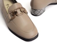 オリジナルのスクエアパーツをあしらったチェーンビットローファー。 メタリックカラーのキルト柄ヒールが足元を華やかに演出してくれます。 シンプルなデザインでパンツはもちろんスカートにも好相性! #パンプス #本革 #ローヒール #スクエア #ワイズ3E