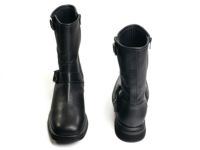 モダンなスクエアトゥデザインのエンジニアブーツ。 土踏まず部分の安定性と履き口の柔らかさが長時間の使用でも快適な足当たりを提供します。 シンプルながらも洗練された外観でどんな服装にも簡単に合わせることができます。 #ブーツ #本革 #ローヒール #スクエアトゥ