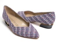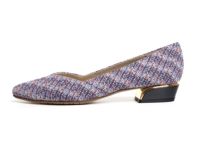 ヒールにメタルパーツが付いたヒールのカラーコンビを楽しんでいただける女性らしいデザインのパンプス。
